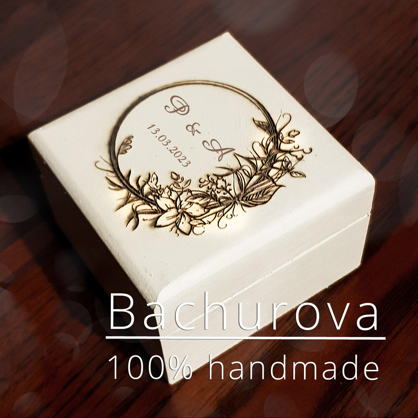 Dřevěná krabička v bílé barvě zdobená gravírováním a iniciály novomanželů podle Vašeho zadání. Získáte osobní stylové baleni na snubní prstýnky, malou šperkovničku, nebo místo kam umístit své poklady. Krabíčka je uvnitř vyložena režnou látkou, která je ozdobená bavlněnou krajkou. Vkusně a prakticky uzpůsobeno pro uchycení svou prstenů.