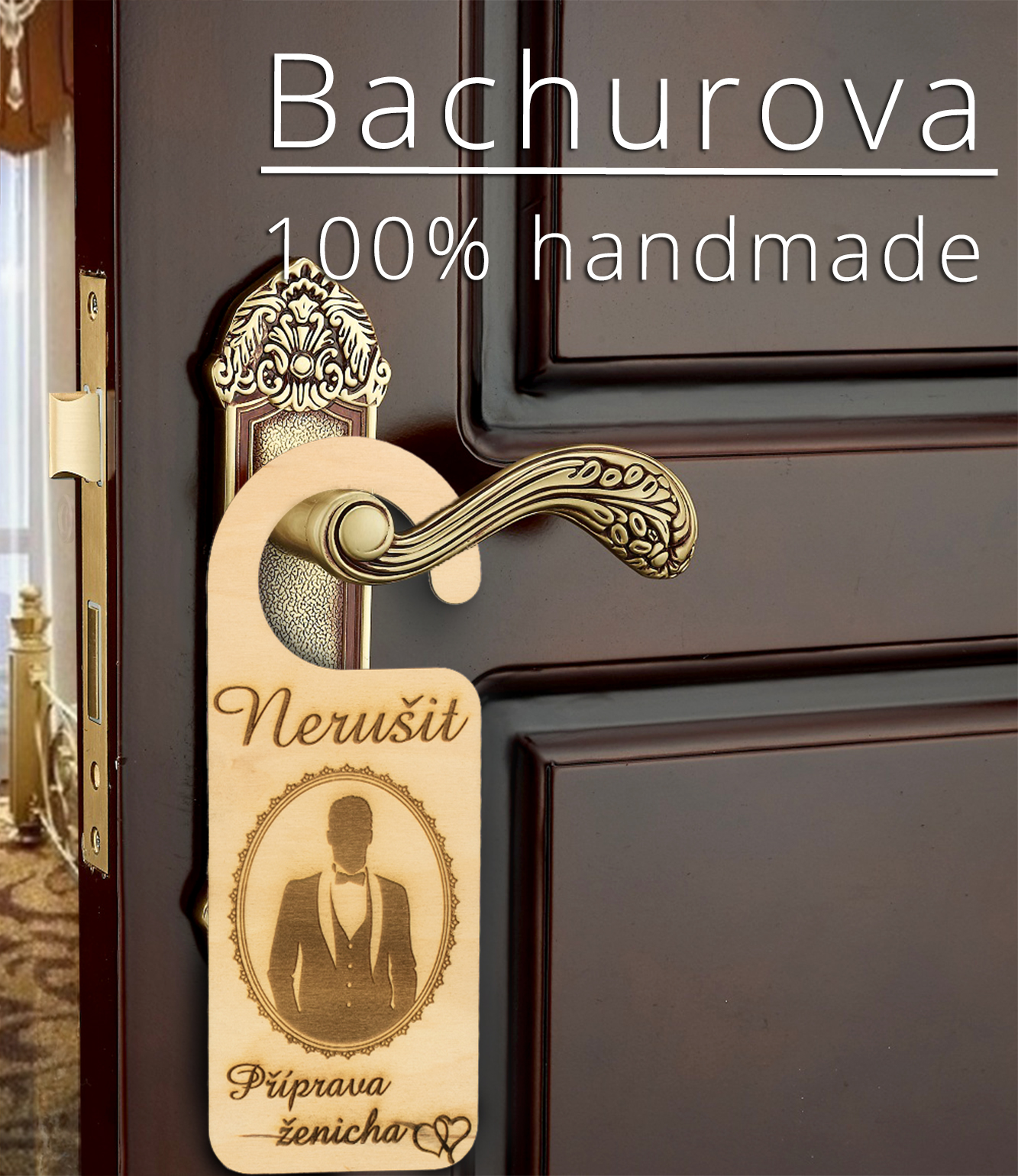 Stylová svatební visačka na kliku - Nerušit _Příprava ženicha.