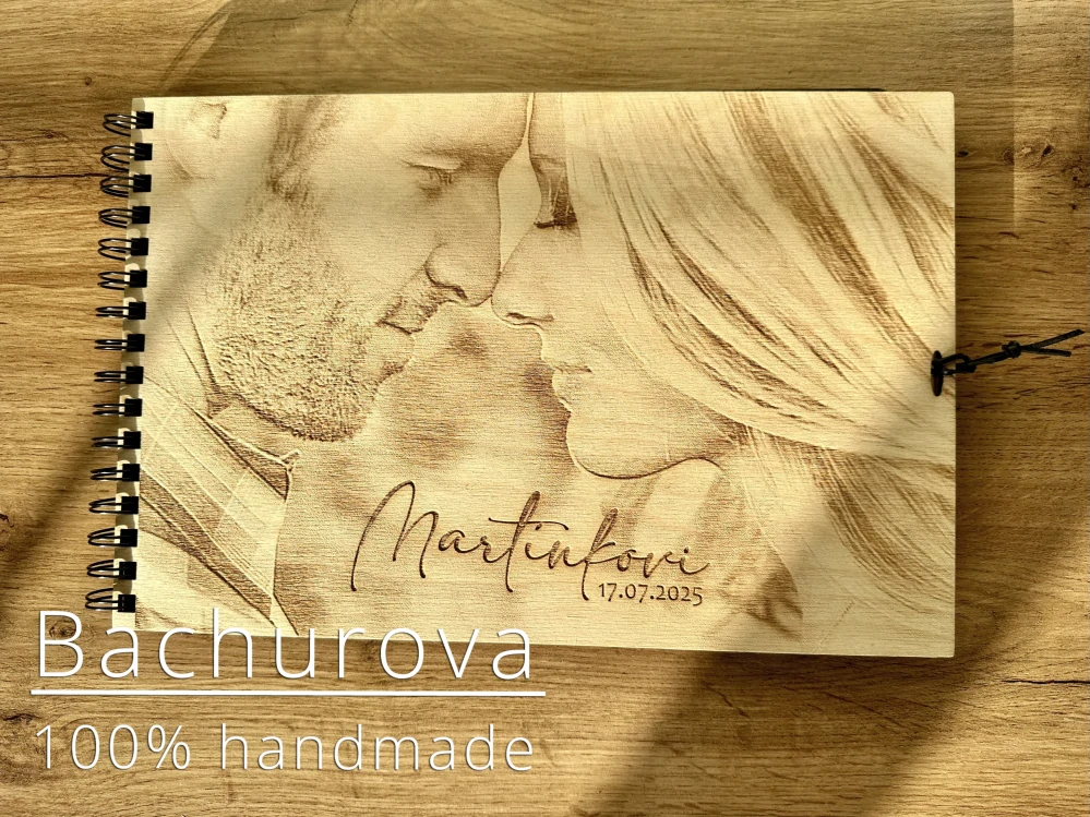 Desky knihy jsou vyrobeny z kvalitní prekližky, do které je laserem vypálená vámi zaslaná fotografie.