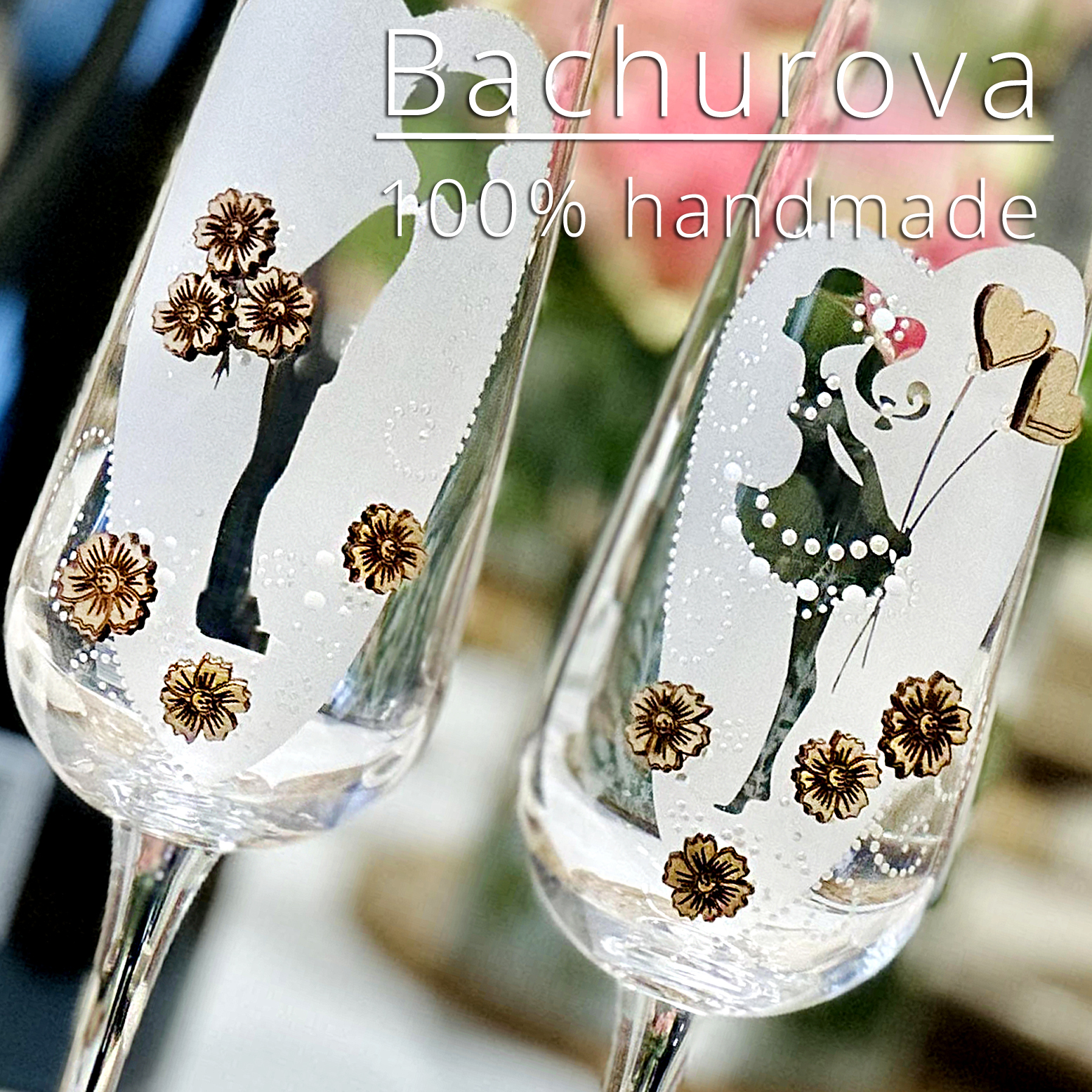 Svatební skleničky_dřevěný dekor700 Kč/ pár